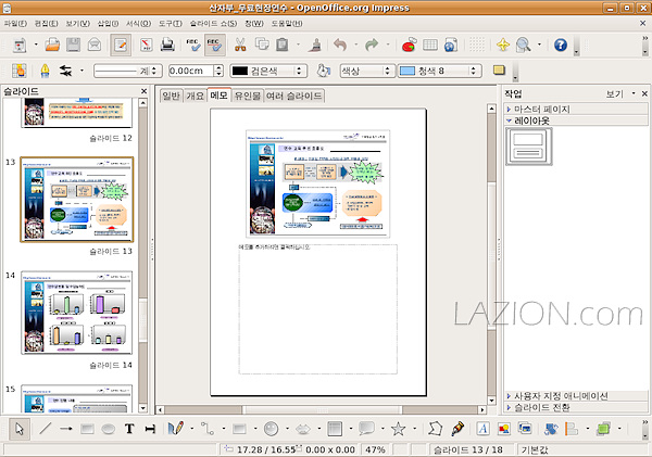 프레젠테이션(Impress)로 파워포인트 파일을 불러 읽어왔습니다.
