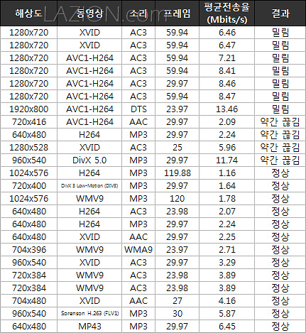 이 토템 플레이어를 통한 동영상 재생 시험을 해본 결과는 다음과 같습니다.